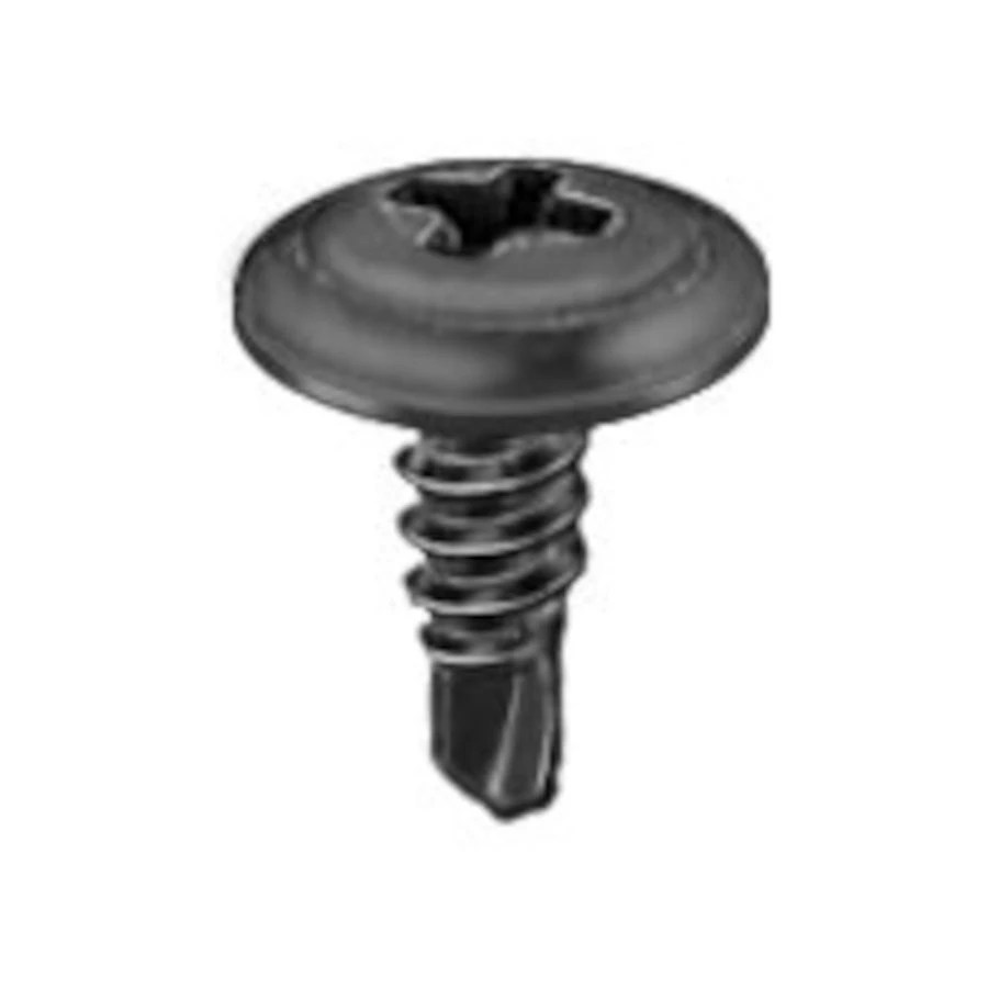 Screw Size : #8 Length : 1/2″ Point Type : #2 Drill Head Style : Phillips Washer Washer Head Diameter : 7/16″ Finish : Black Phosphate Pcs/Unit: 50