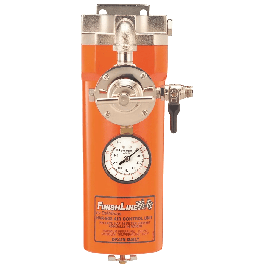 The FinishLine Air Control Unit ensures clean, dry air is present from the air source to provide ideal painting conditions.