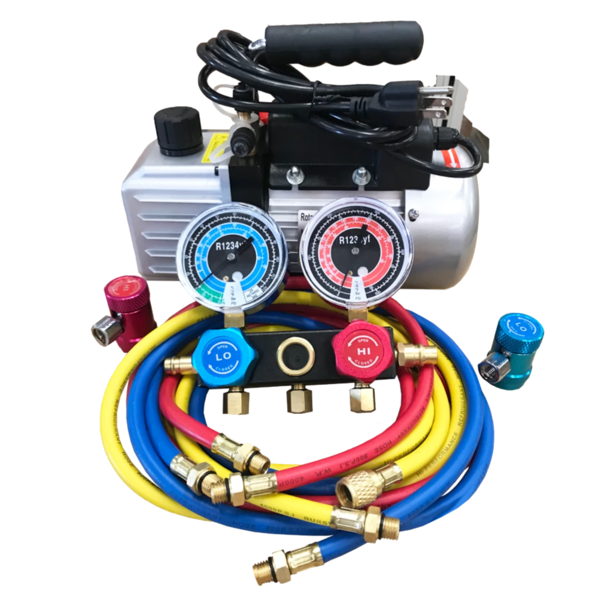 - FJC’s Vacuum pump and manual gauge set assortments allow effective repair, discharge and maintenance of automotive air conditioners. Our innovative sets are reliable and long lasting.