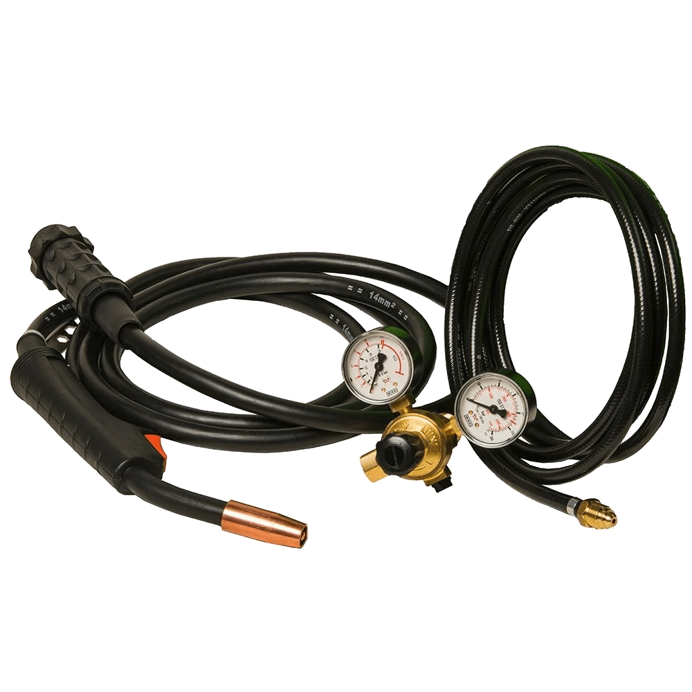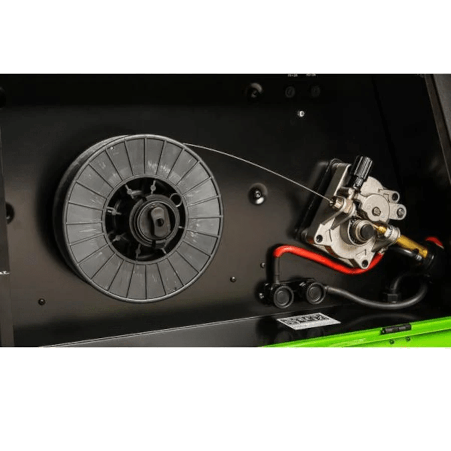 This machine is MIG ready with regulator and gas hose. The Forney 270 MIG offers quality features like spool gun capability, quick “Euro” style disconnect torch, MIG gun with 15′ lead, aluminum feed/drive system, multiple trigger modes, high output and duty cycle with a full size cabinet. The quality, performance, and value of this machine will impress.