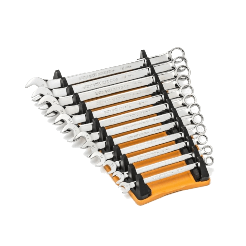 - Wrenches always face forward for easy size identification