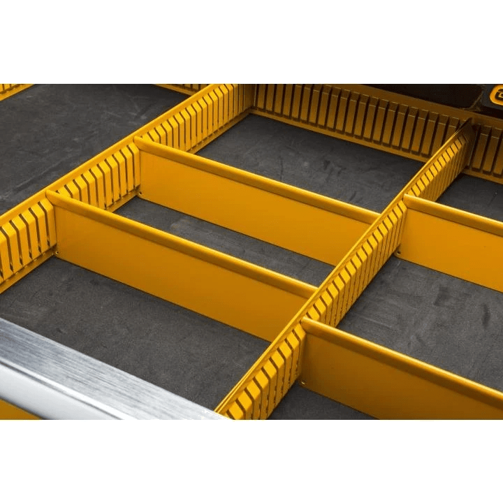 • Top drawer features customizable partition system for ease-of-use