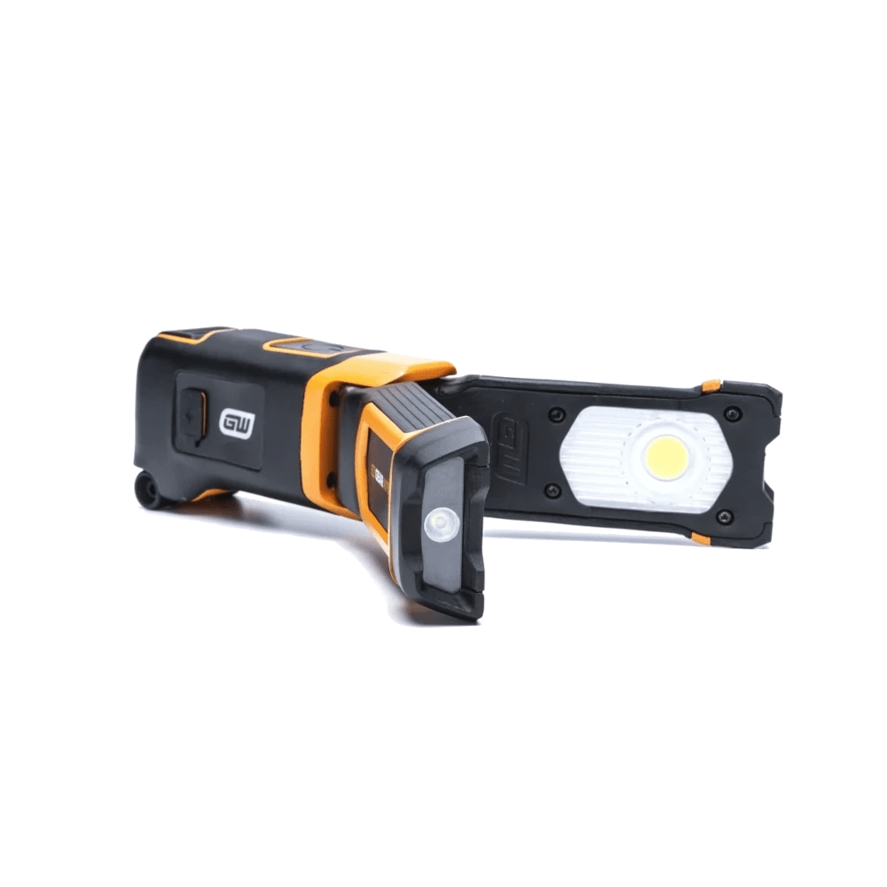 Dual LED 500 and 1000 lumen ratings with COB technology Single 400 lumen spotlight Sealed water resistant IP54 rating for dust and water spray Rechargeable lithium ion battery with indicator provides up to 4 hours of run time Offers constant current so th