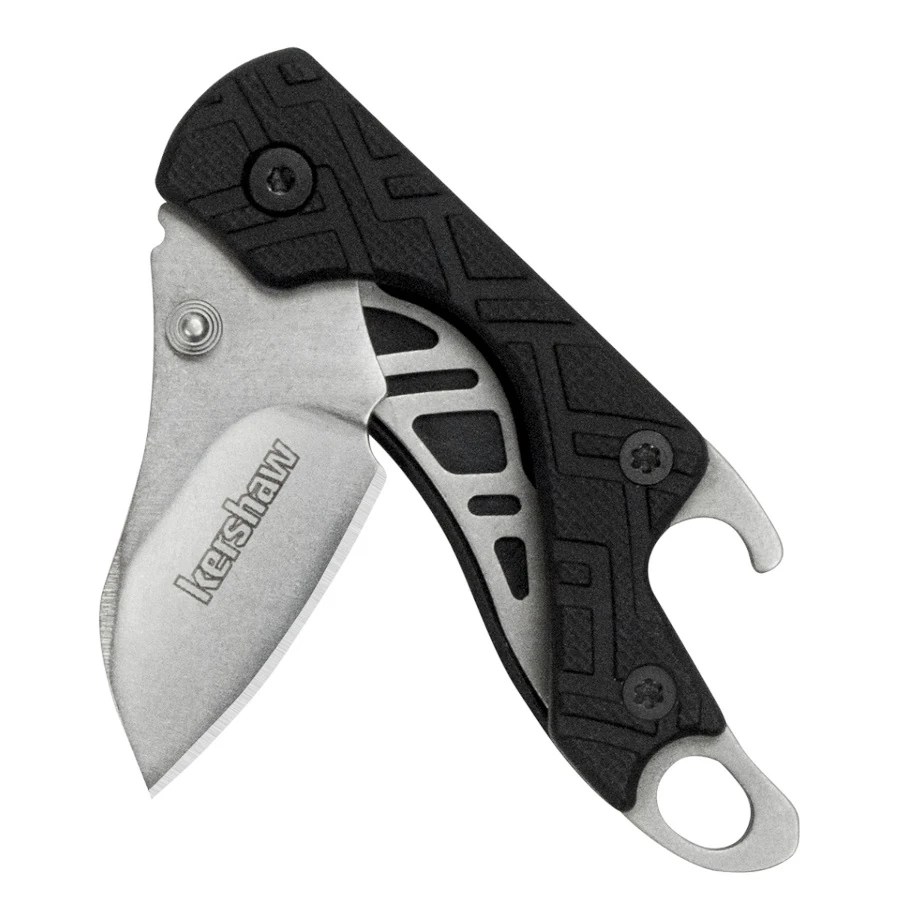 The Cinder is keychain-ready, multi-function, and not at all “scary.” Designed by custom knifemaker Rick Hinderer, the Cinder is the ultimate box cutter and handy mini knife. It has plenty of style and cutting power, but in a smaller “keychain” size so you can take it almost anywhere. The Cinder’s durable, practical black glass-filled nylon handle is tough and easy care.