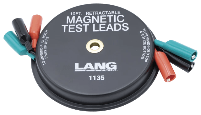 - Retractable test leads pull out and stay at desired length and rewind into its own protective case when not in use