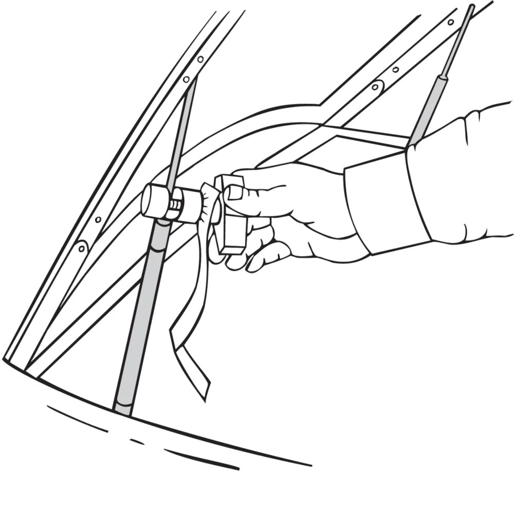 Tool holds gas charged lift supports found on hoods, tailgates, hatchbacks and trunks. Clamp securely holds weak lift supports in the extended position to allow access to the engine compartment or luggage area. The aluminum body and brass threads prevent damage to the lift support. Colorful flag serves as a reminder to remove the clamp.