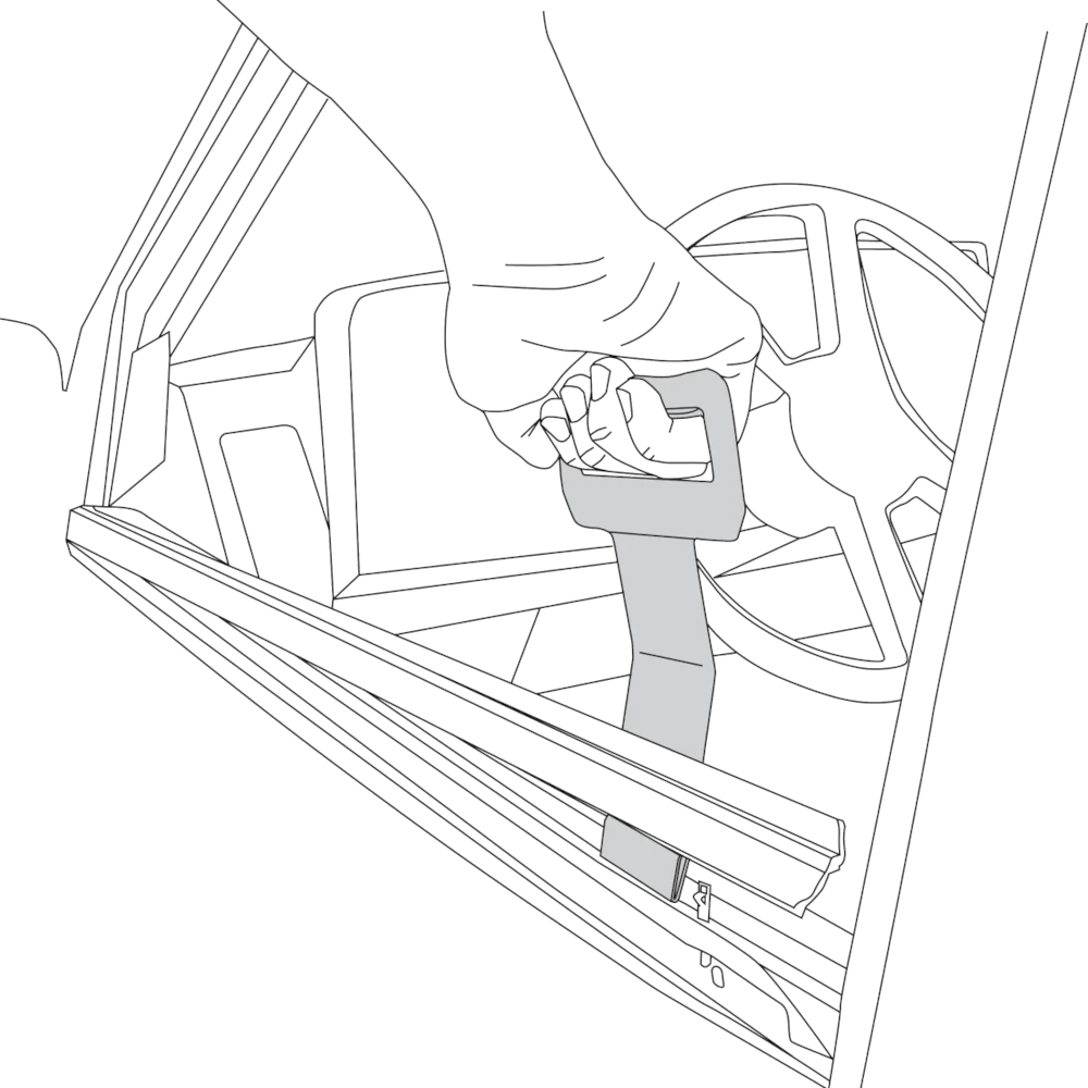 Slide the powder-coated tool downward between the window exterior and the door. The channel side of the tool should face the door. When the tool channel is below the belt molding, push or pull the tool upward. The tool quickly removes the belt molding without damage to the window or the molding. Fits most domestic and import vehicles.
