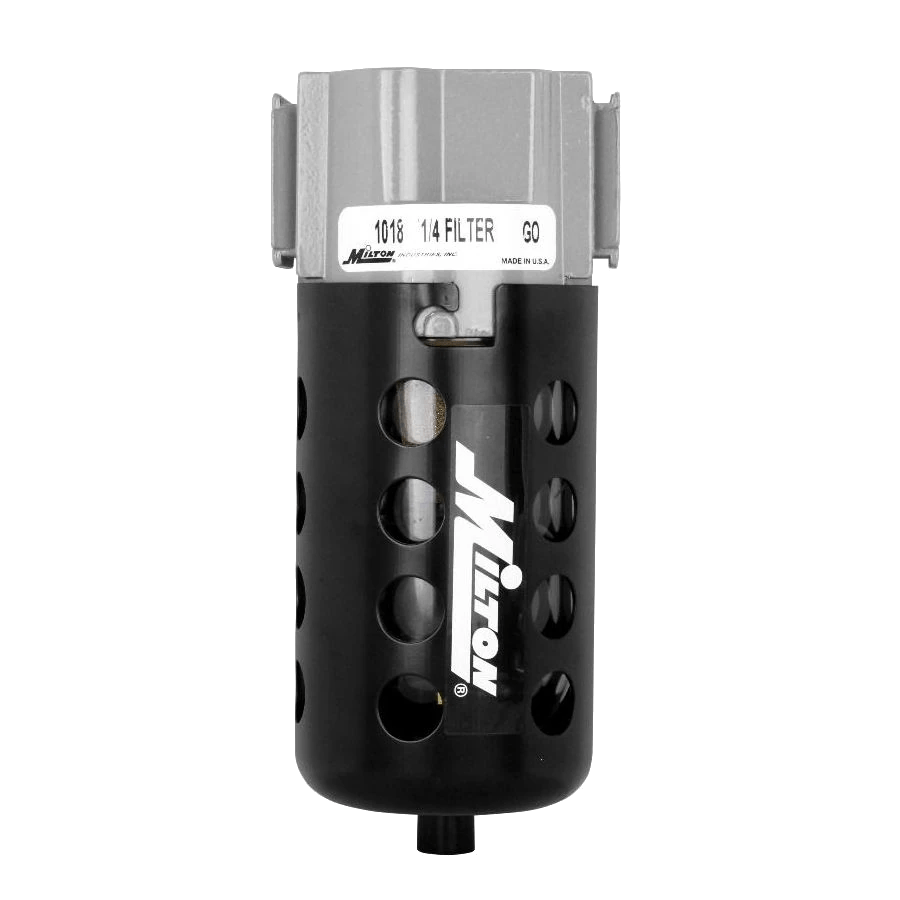 This 1/4″ NPT Milton® micro filter is supplied with a pre-assembled internal automatic overnight drain, which will operate when an air supply is shut down or when liquid has gathered in the filter bowl.