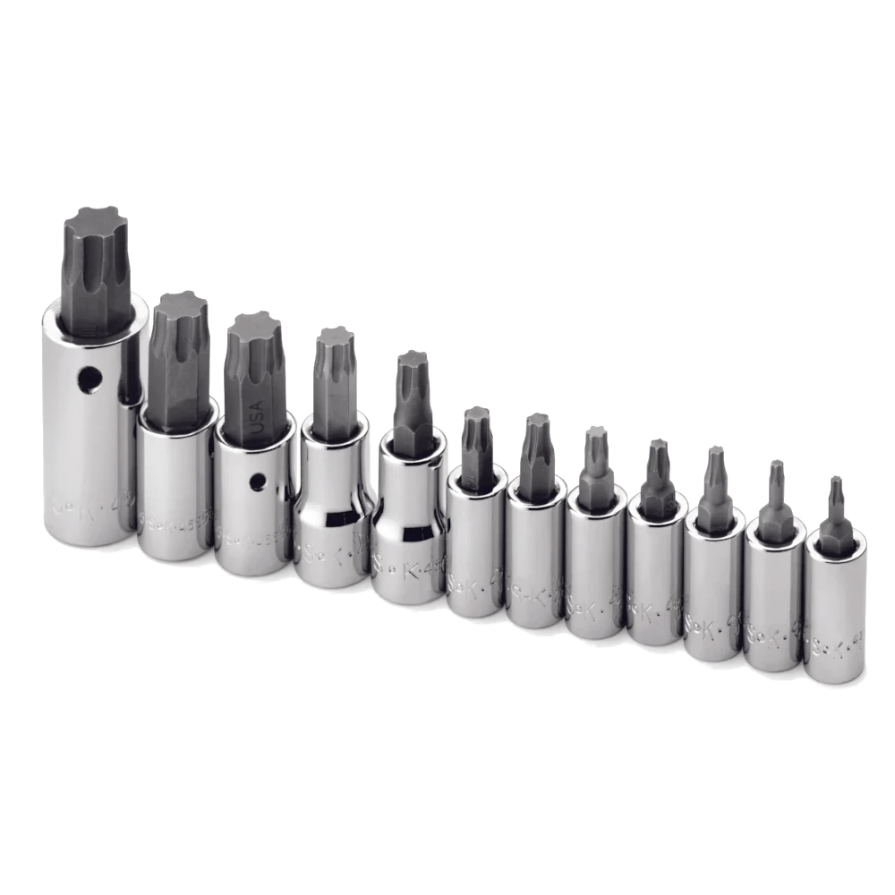 - 1/4″ Drive Torx PLUS® Bit Sockets – T8, T10, T15, T20, T25, T27, T30; 3/8″ Drive Torx PLUS® Bit Sockets – T40, T45, T50, T55; 1/2″ Drive Torx PLUS® Bit Socket – T60