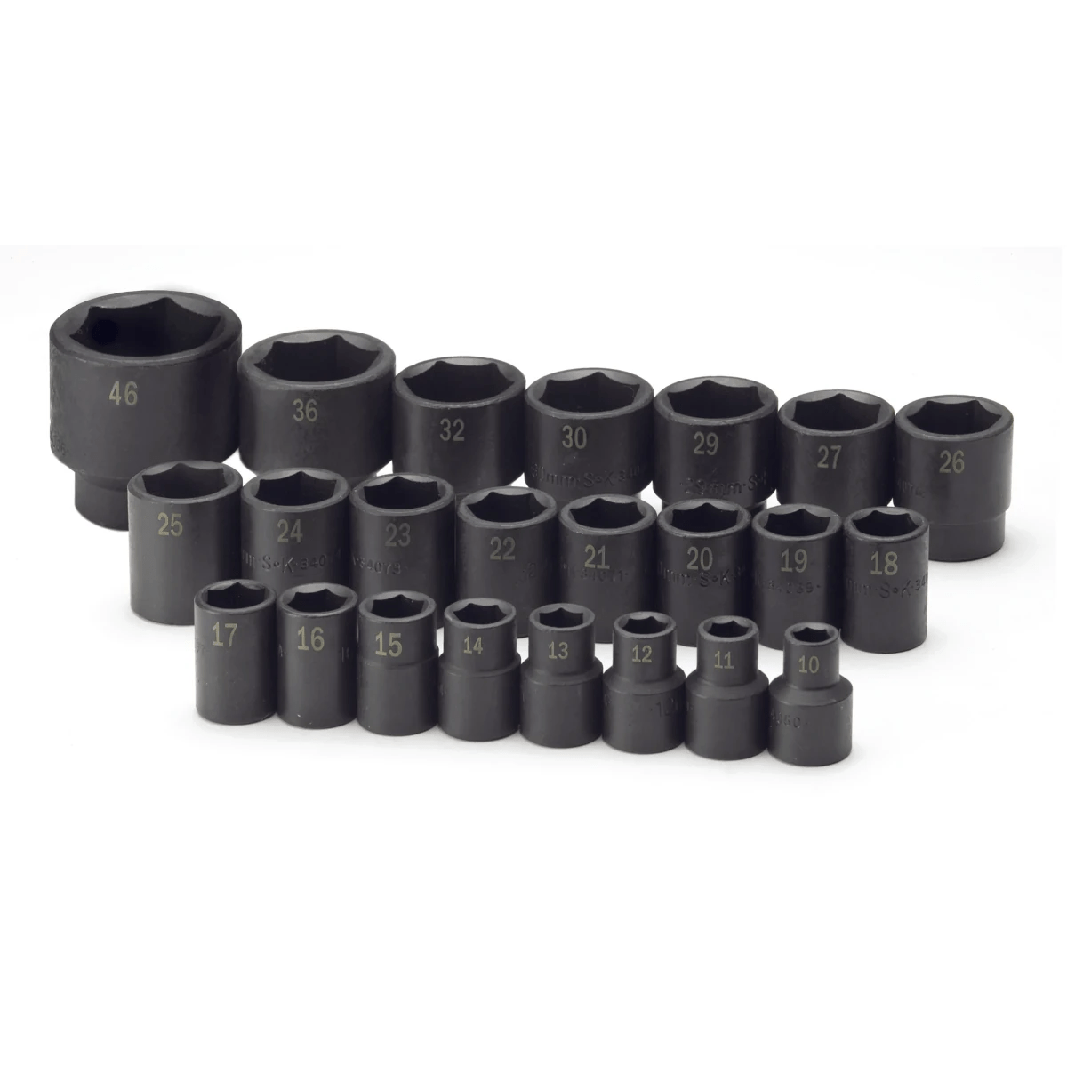 - 23 Piece 1/2″ Drive 6 Point Standard Metric Impact Socket Set