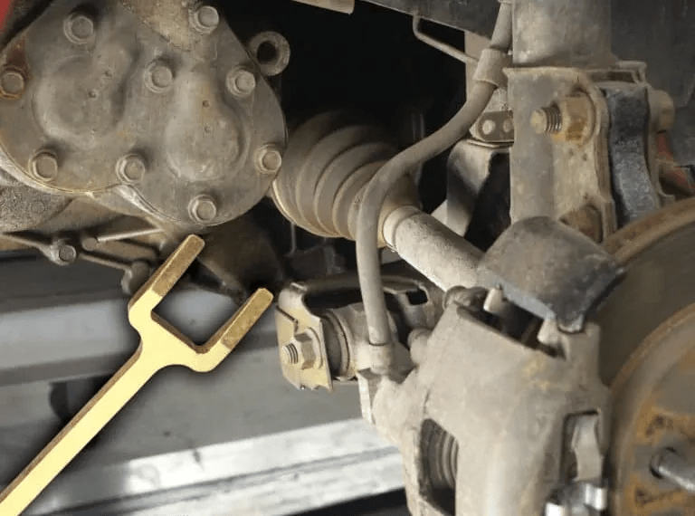 - Insert fork between transaxle case and half shaft. Strike the end of the fork to release the half shaft.
