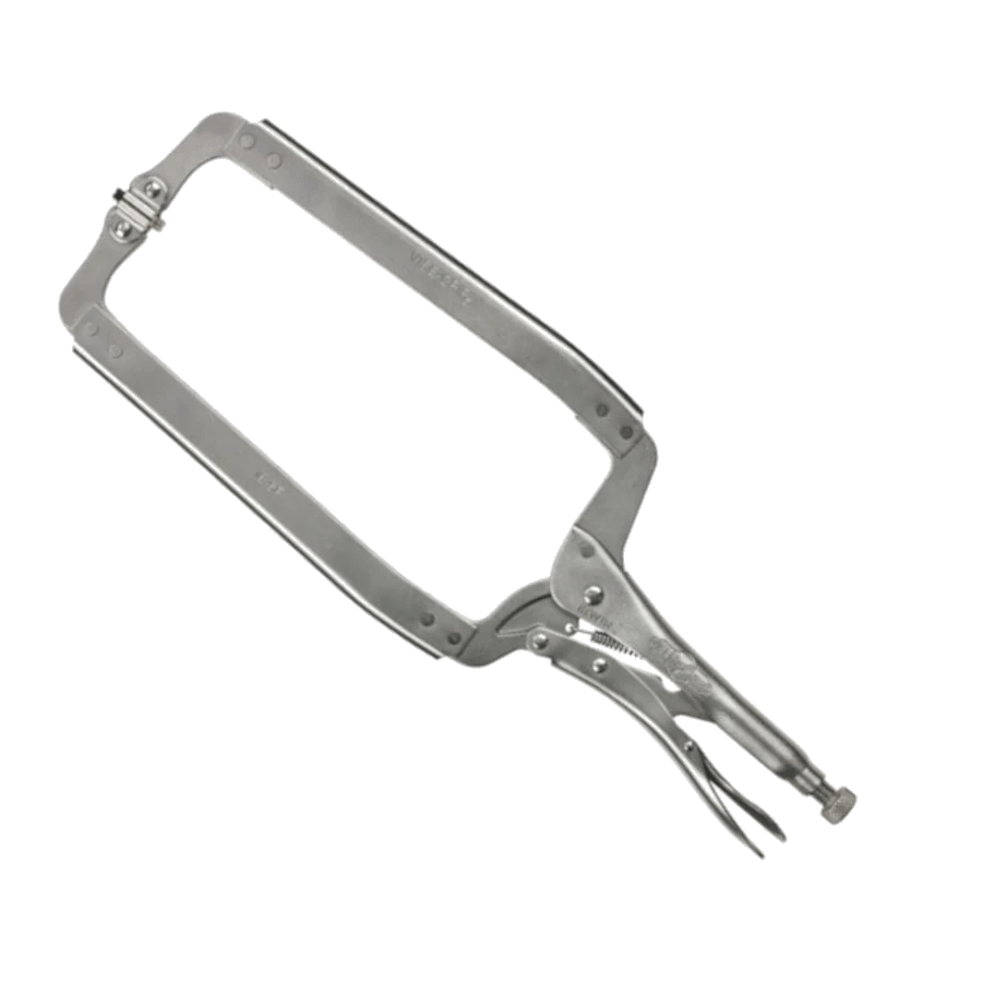 Wide-opening jaws provide greater versatility in clamping a variety of shapes.