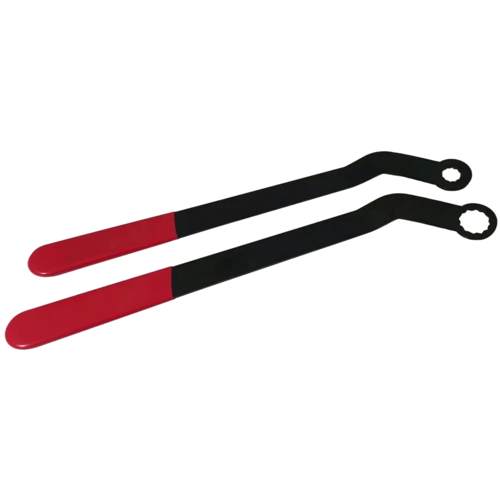 - 2 long-handled (22″ / 55cm) wrenches, with special bends, to service late model Mini Coopers