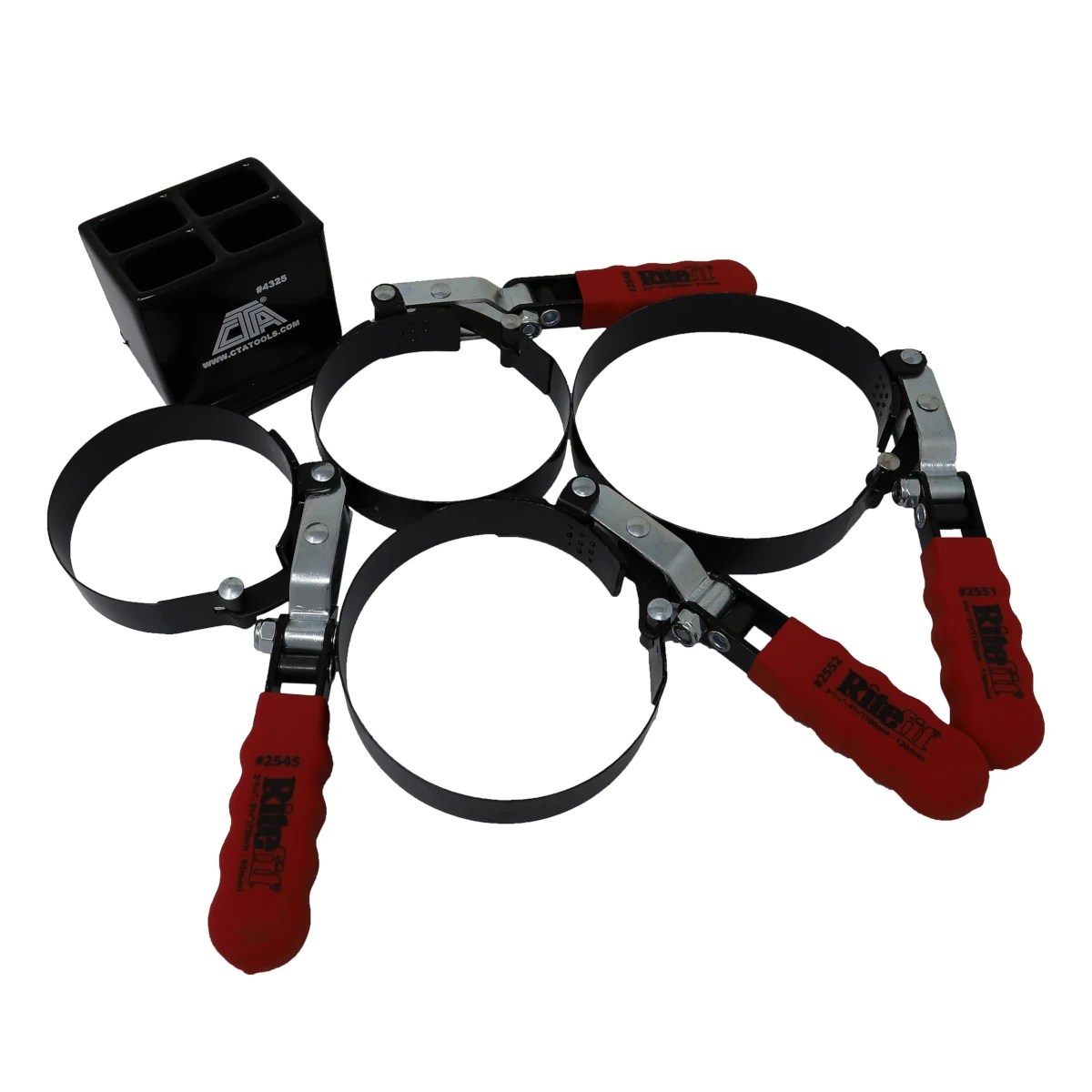 - 4 piece oil filter wrench set with stable, secure magnetic stand