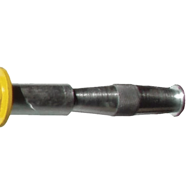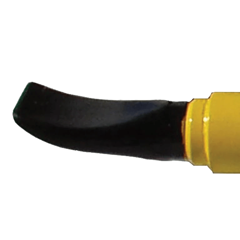 The wedge foot is forced between the bead and rim flange, delivering blow directly to the tip