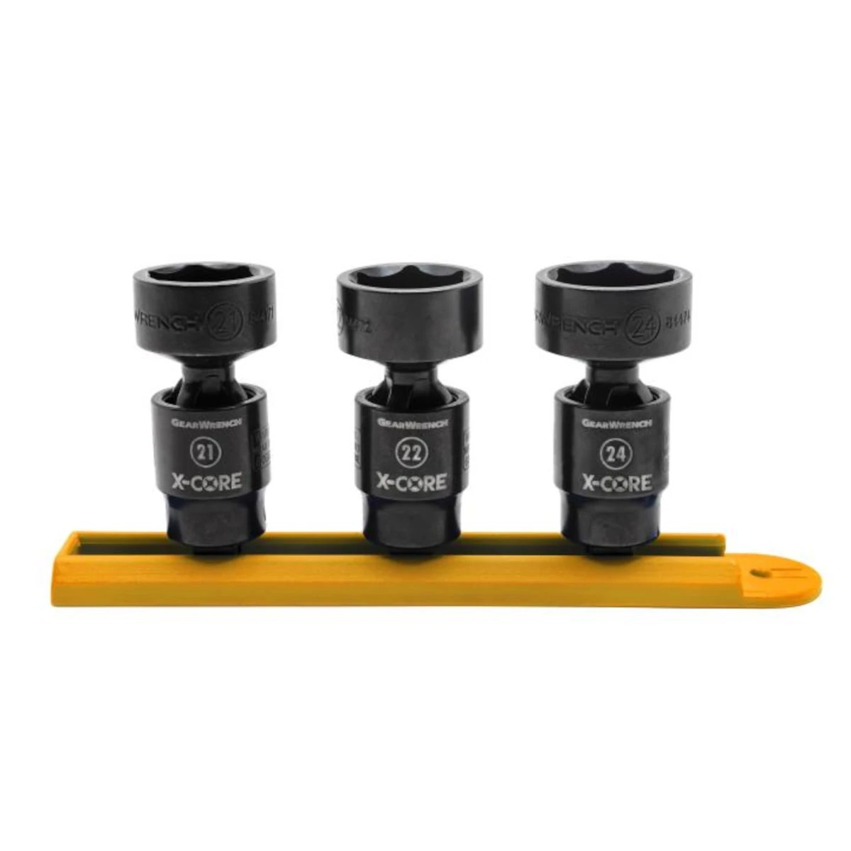 GEARWRENCH 84976 3 Pc. 3/8″ Drive 6 Point Standard X-Core Pinless Universal Impact Metric Socket Set