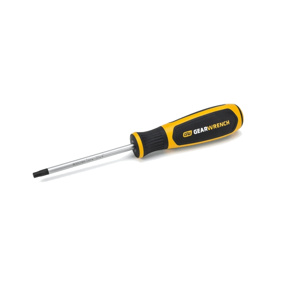 GEARWRENCH screwdrivers are ergonomically designed to fit your hand while on the job. The tri-lobe handle shape provides the best performance with the least amount of effort. The dual material of the handle is oil and solvent resistant. The tips have a black oxide, non-slip coating. The part numbers and sizes are laser etched on the blade.