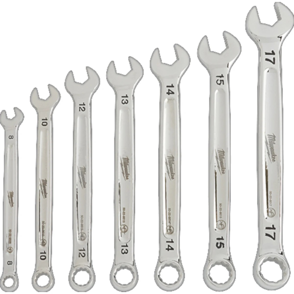 Milwaukee has designed their Combination Wrenches from the ground up, delivering maximum torque and ultimate user comfort. The MAX BITE™ Open-End Grip improves the wrench’s grip on nuts and bolts, and the geometry reduces rounding and stripping. MAX BITE™ offers 25% More Torque than competitive wrench designs. The Comfortable I-Beam Handle Design allows superior user comfort, even while applying high torque. Milwaukee wrenches feature Ink-Filled Size Labels for easy size identification, and quick distinction between SAE and metric sets. The 7pc kits come in a portable, locking storage tray, offering organization both on and off the jobsite. Standing behind our products, Milwaukee offers a Lifetime Guarantee on all of our Combination Wrench Sets.
