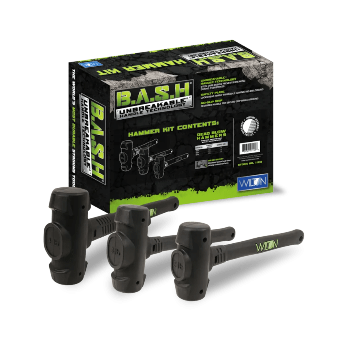 At Wilton, we are on a never-ending journey to create the highest quality, most indestructible tools on the market. On this journey we’ve managed to design for the world’s most durable dead blow hammer. The B.A.S.H® Dead Blow Hammer Kit includes three of our most popular hammers – 2 Lb, 14″ B.A.S.H® Dead Blow Hammer, 3 Lb, 14″ B.A.S.H® Dead Blow Hammer and 4 Lb, 16″ B.A.S.H® Dead Blow Hammer.